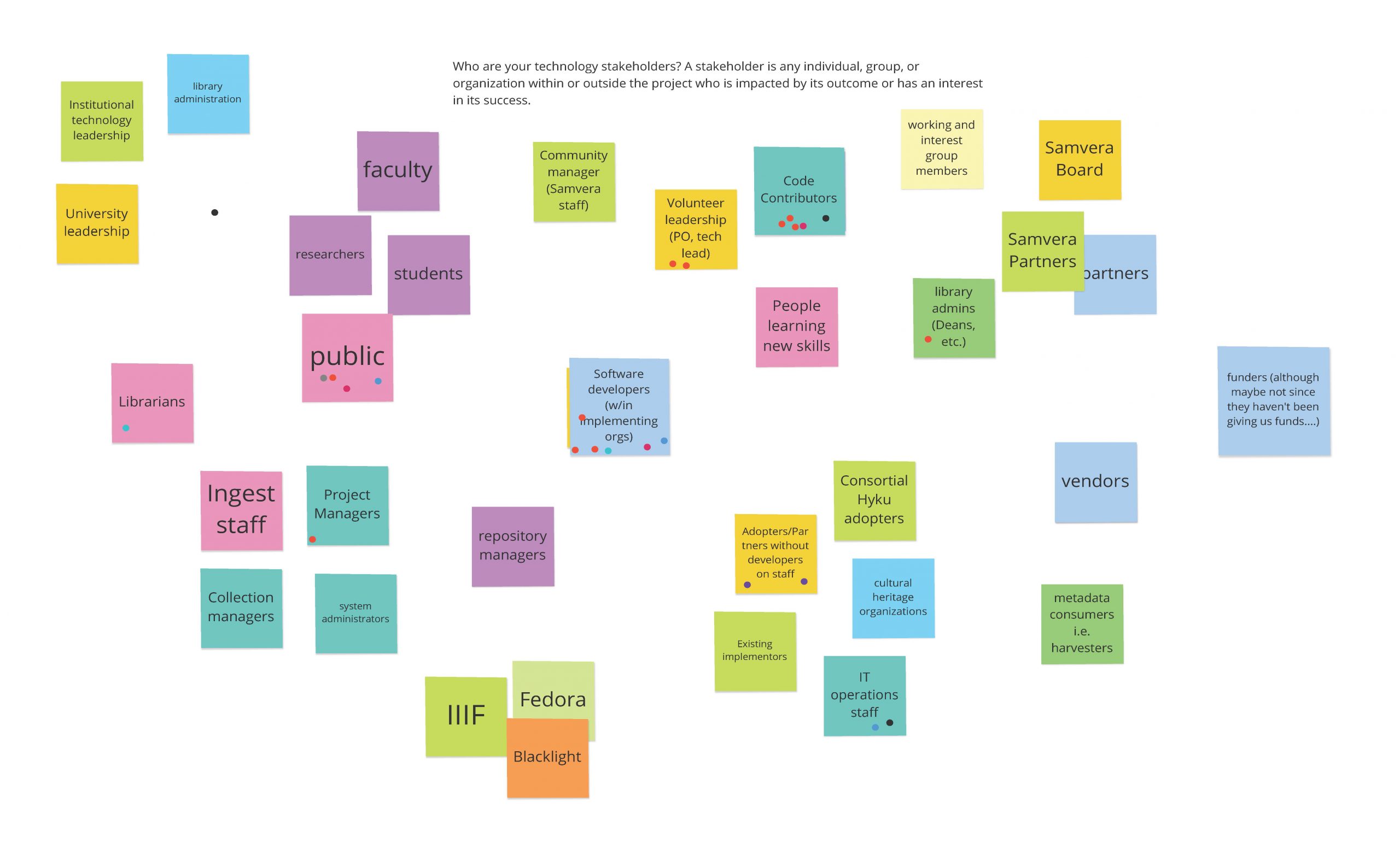 - Identify and prioritize the community's technology stakeholders